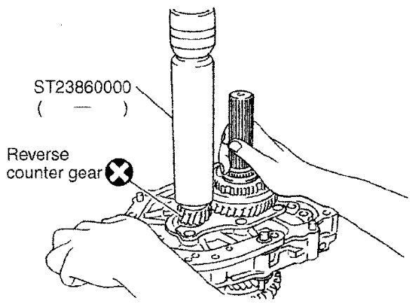 27) Press in reverse counter gear using Tool.