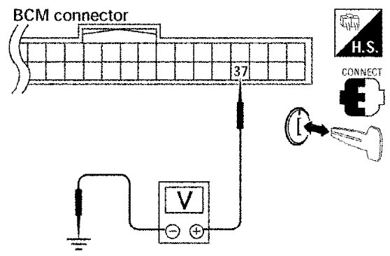 Check voltage between BCM connector M18 terminal 37 and ground.