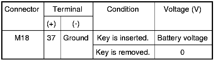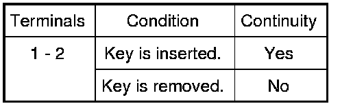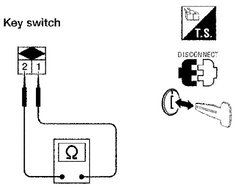 3 Check continuity between key switch terminals.