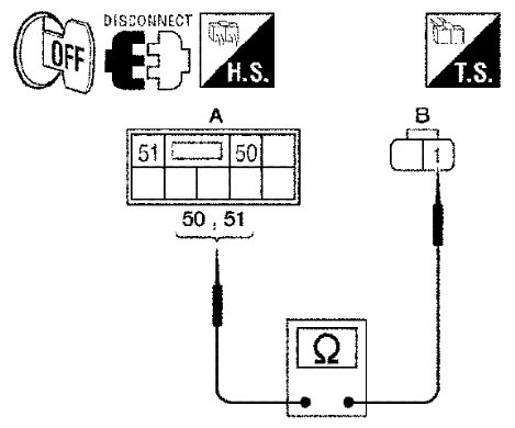 3 Check continuity between the IPDM E/R harness connector (A) and the front fog lamp harness connector (B).