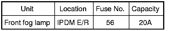 The IPDM E/R (intelligent power distribution module engine room) controls the front fog lamp relay based on inputs from the BCM via the CAN communication lines. When the front fog lamp relay is energized, power flows from the front fog lamp relay in the IPDM E/R to the front fog lamps.