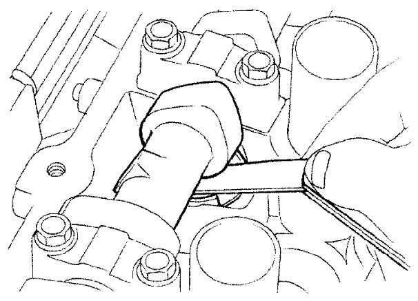 b) Use feeler gauge, measure the clearance between valve lifter and camshaft.