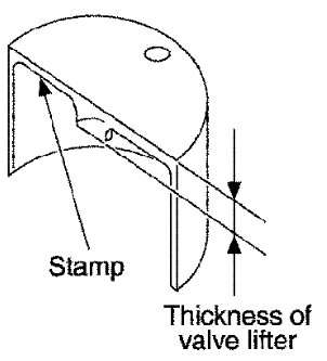 - Thickness of new valve lifter can be identified by stamp marks on the reverse side (inside the cylinder).
