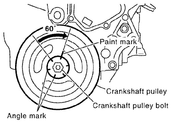 Crankshaft pulley bolt flange has a stamped line every 60°. They can be used as a guide to rotation angle.