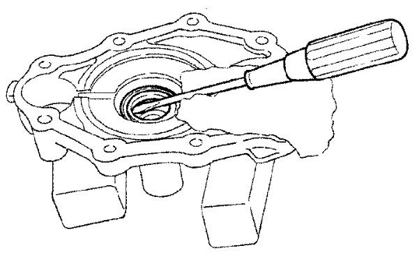 9) Remove front cover oil seal using suitable tool.