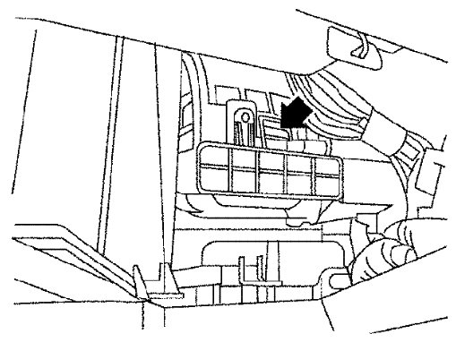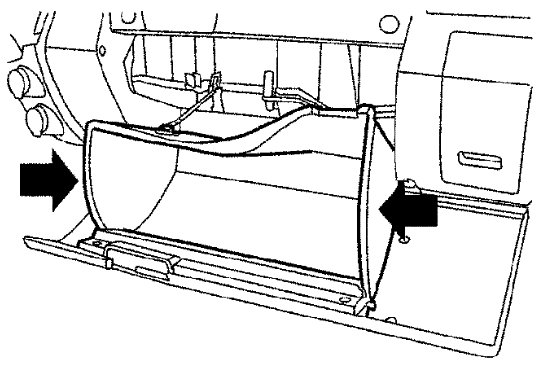 1) Open the lower glove box and press in on the sides so that it will open completely allowing it to hang by the cord.