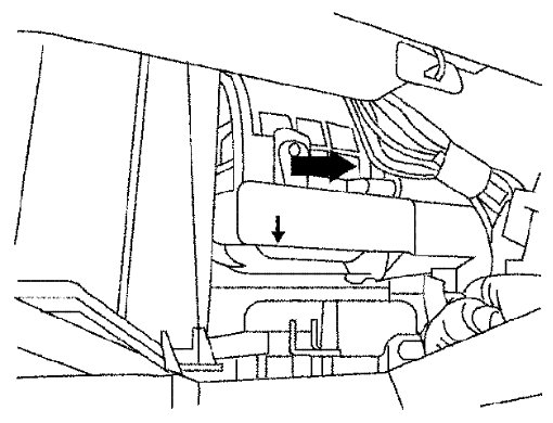 2) Depress the tab and remove the in-cabin microfilter cover as shown.