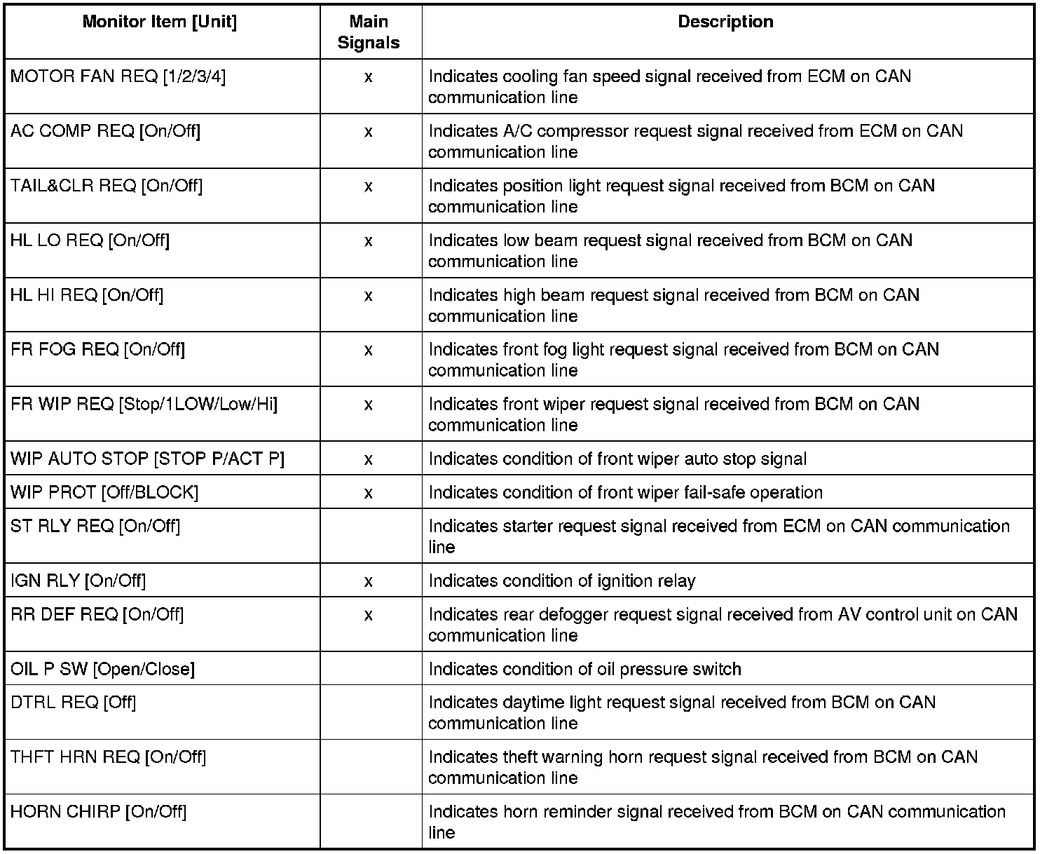 SDT performs the following functions via CAN communication with IPDM E/R.
