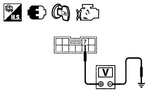2 Check voltage between A/T shift selector connector terminal and ground.