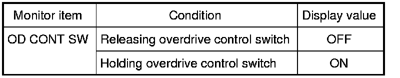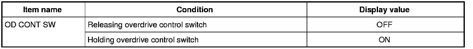 Check the signal of the overdrive control switch is indicated properly.