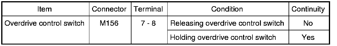 Overdrive Control Switch Circuit Check