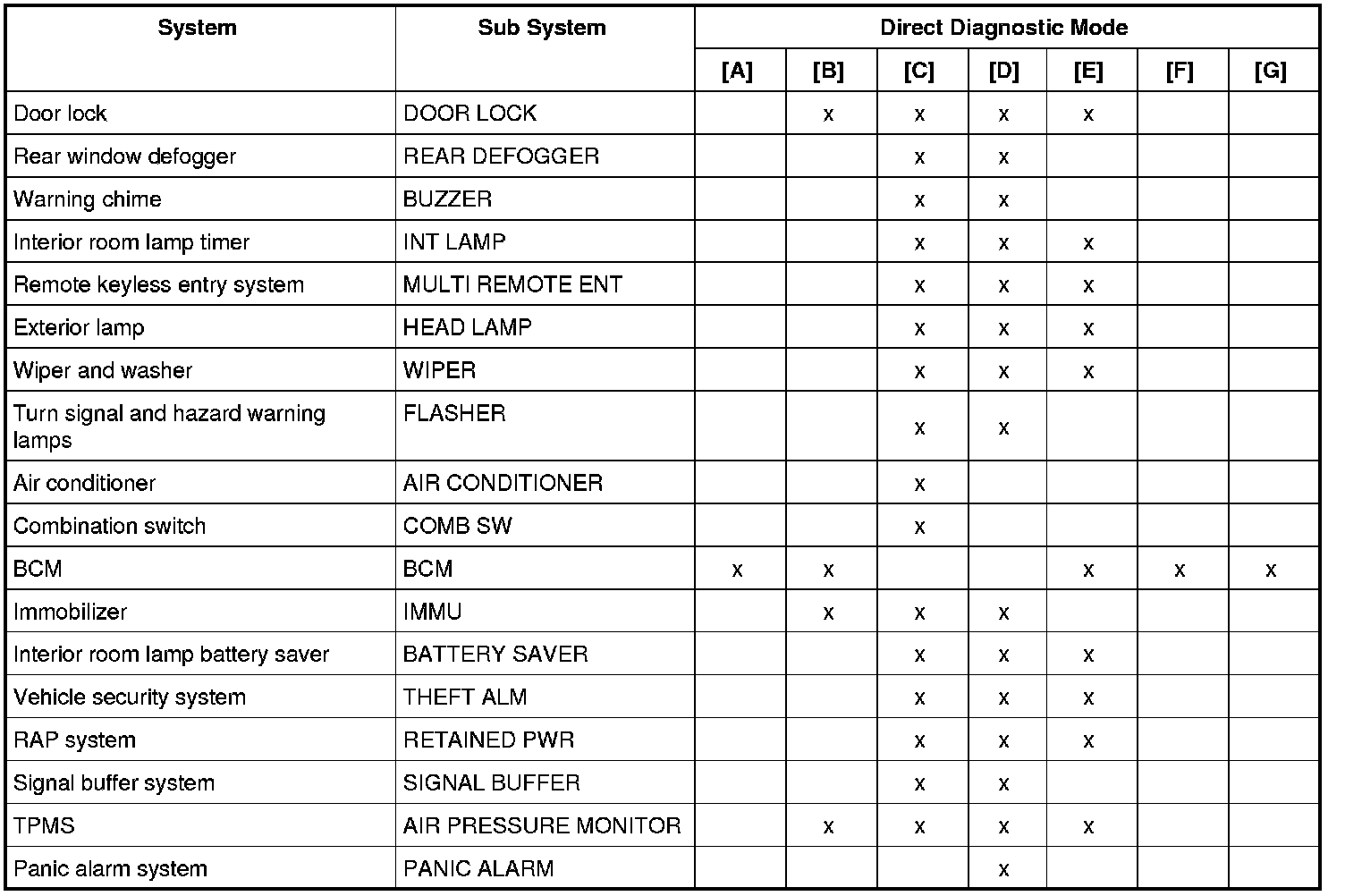 SDT Function (BCM - COMMON ITEM)
