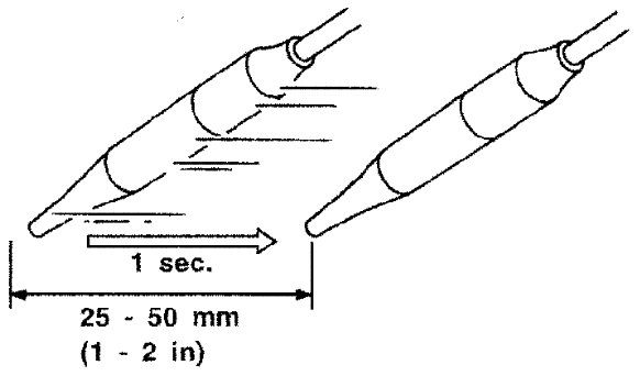 3) Move the probe along each component at a speed of approximately 25 - 50 mm (1 - 2 in)/second as shown.