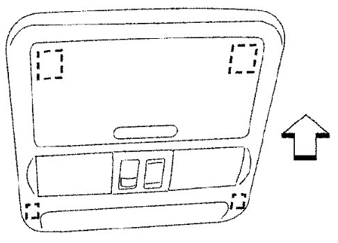 4) Using a suitable tool, release the pawls and remove the room lamp lens.