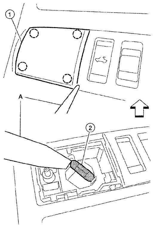 1) Using a suitable tool (A), remove the front room/map lamp RH and/or LH lenses (1) as necessary.