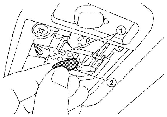 5) Release the room lamp bulb retainers (1), then pull bulb (2) straight out to remove.