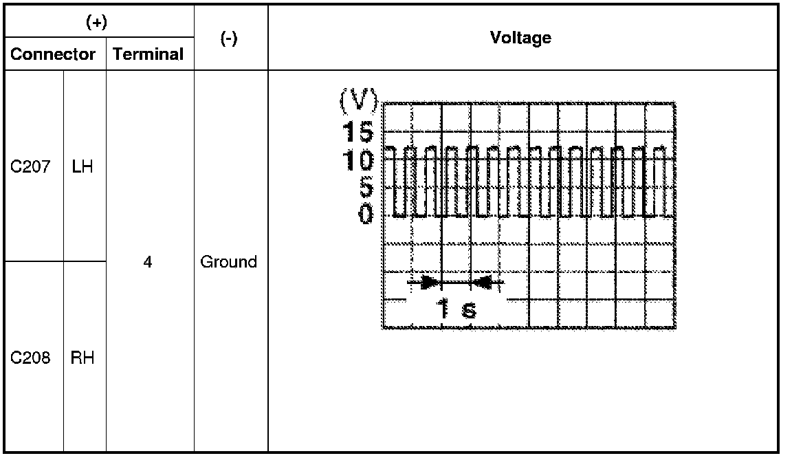 4 With turn signal switch operating, check the voltage between the front combination lamp harness connector and ground.