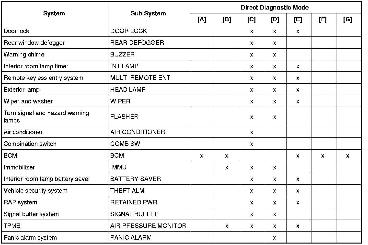 SDT Function (BCM - COMMON ITEM)