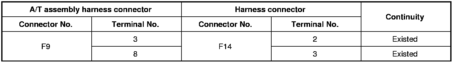 Repair the main line between the A/T assembly and the harness connector F14.