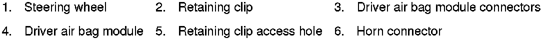 5) Disconnect the driver air bag module and horn connectors, then remove the driver air bag module.