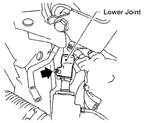 8) Remove the bolt from the lower joint of the lower joint shaft, then remove the lower joint shaft from the vehicle.