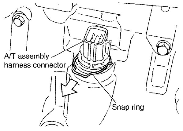 4) Remove snap ring from A/T assembly harness connector.