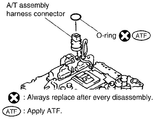 14) Remove O-ring from A/T assembly harness connector.