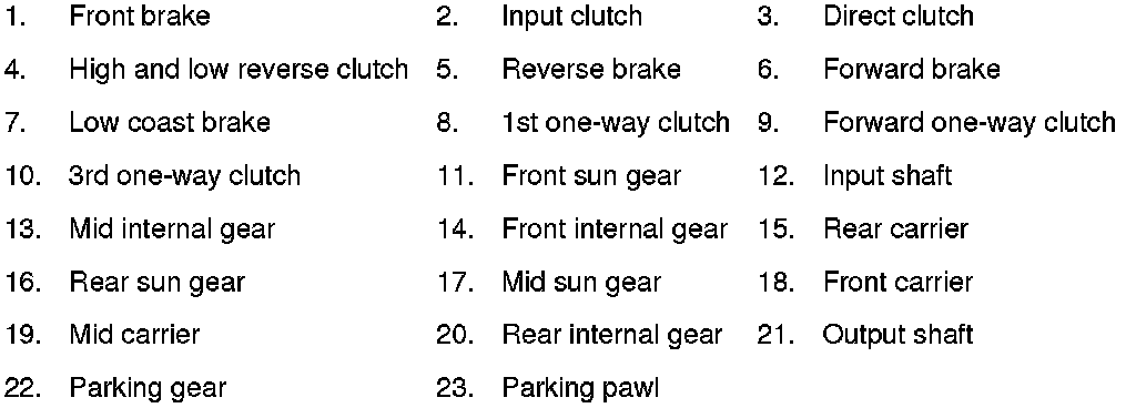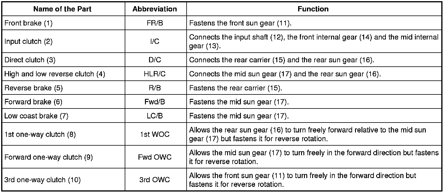 - The forward brake and the forward one-way clutch regulate reverse rotation of the mid sun gear.