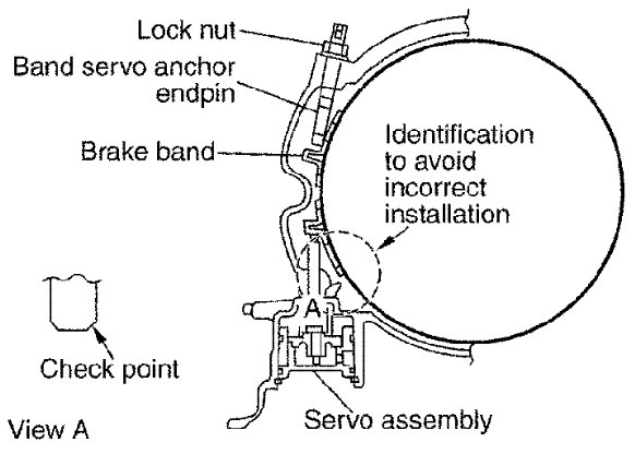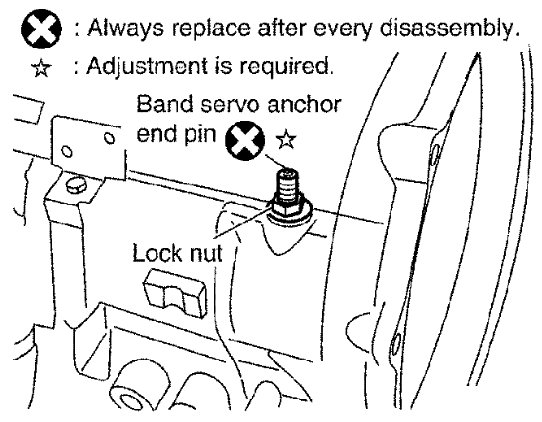 48) Install band servo anchor end pin and lock nut in transmission case.
