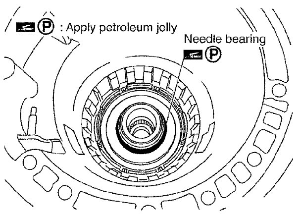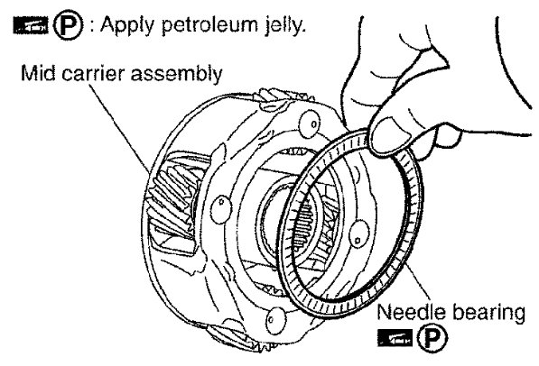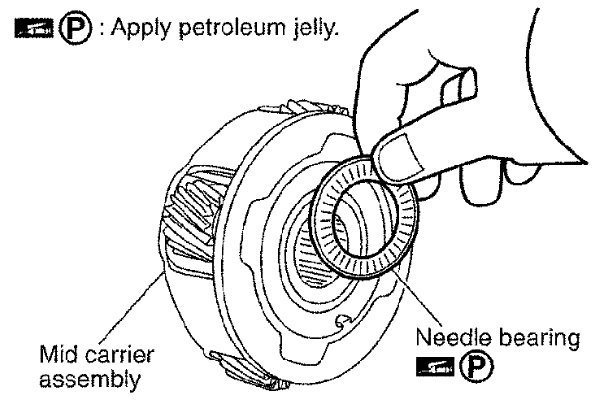 Apply ATF to front sun gear bearing and 3rd one-way clutch end bearing.