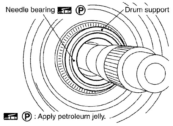 14) Install needle bearing to drum support edge surface.