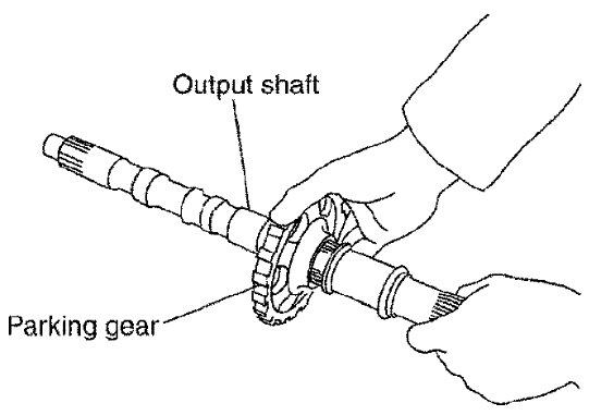 31) Install parking gear to output shaft.