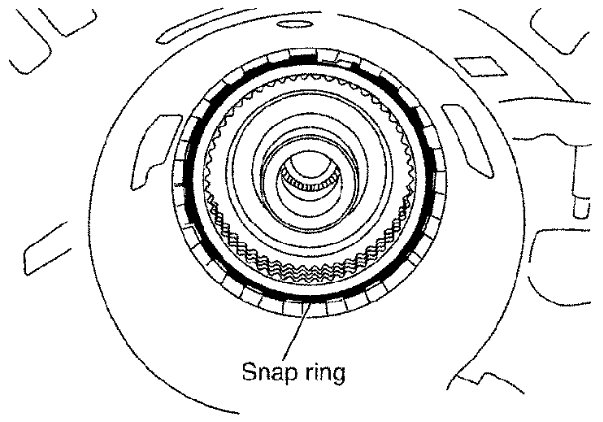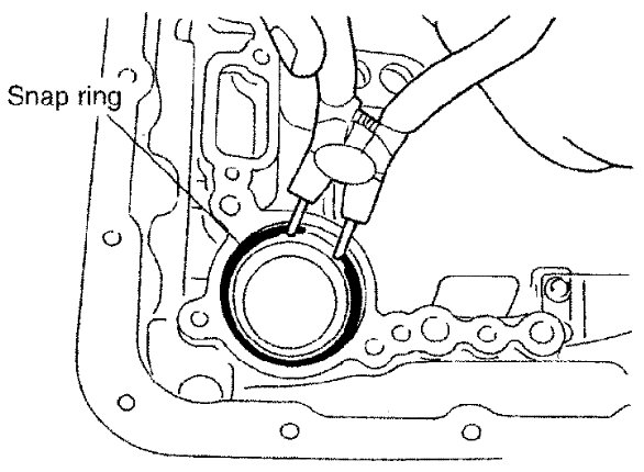 11) Install snap ring to transmission case using suitable tool.