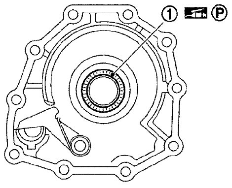 29) Install needle bearing (1) to rear extension (2WD models) or adapter case (4WD models).