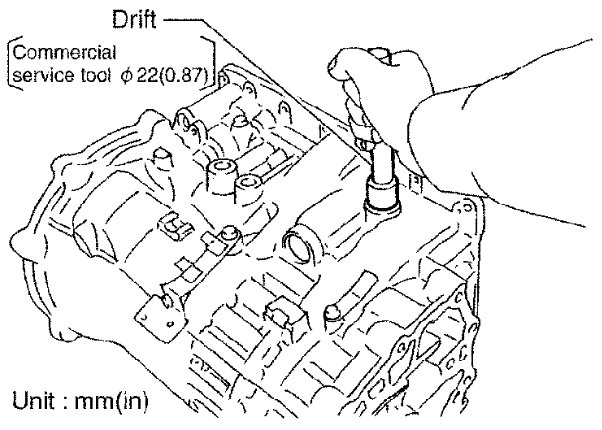 - Drive retaining pin to 5 ± 1 mm (0.20 ± 0.04 in) over the transmission case.