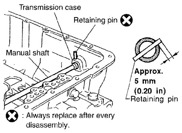 7) Install retaining pin into the transmission case and manual shaft.