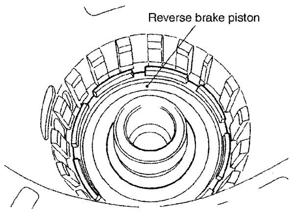 13) Install reverse brake piston in transmission case.