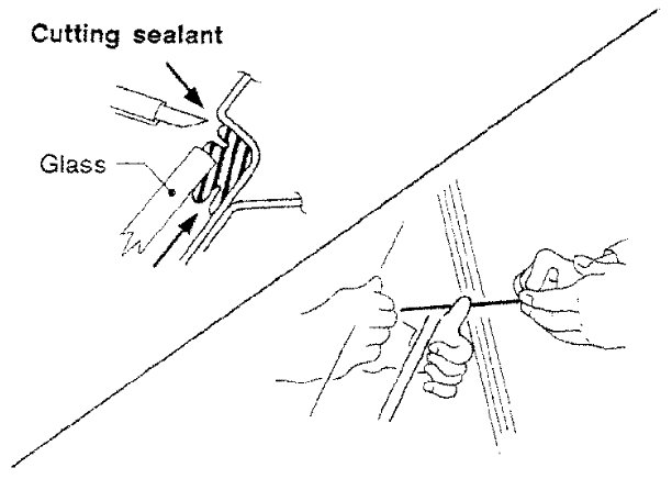 - When the rear window glass is to be reused, do not use a cutting knife or power cutting tool.