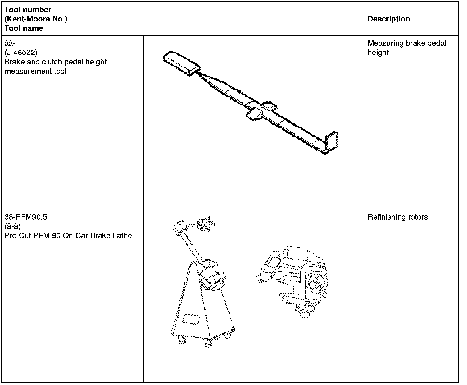 The actual shapes of Kent-Moore tools may differ from those of special service tools illustrated here.