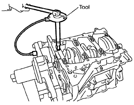 a) Apply a continuous bead of liquid gasket using Tool to lower cylinder block as shown.