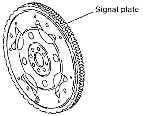 - Be careful not to damage or scratch drive plate (A/T models) or contact surface for clutch disc of flywheel (M/T models). Especially avoid deforming and damaging of signal plate teeth.