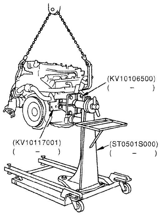 - Use an engine stand that has a load capacity [approximately 240 kg (529 lb) or more] large enough for supporting the engine weight.