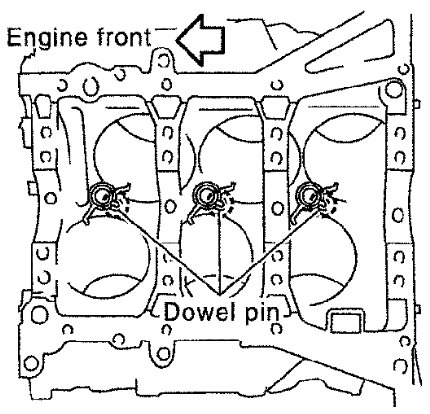 - Be sure that front mark on connecting rod bearing cap is facing front of engine.