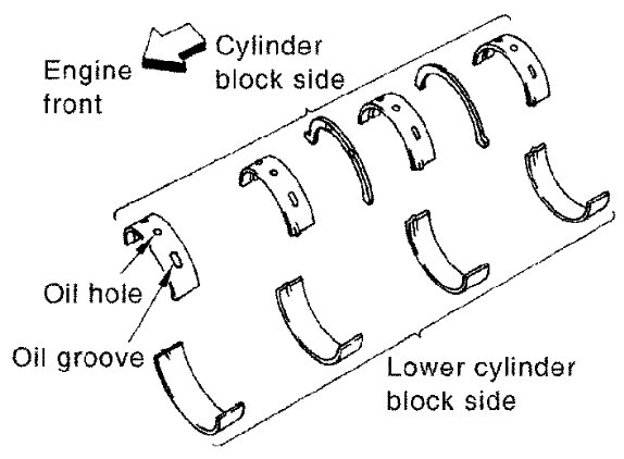 - Main bearing with oil hole and groove goes on cylinder block. The one without them goes on lower cylinder block.