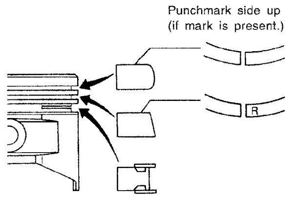- Be careful not to damage piston rings by expanding them excessively.