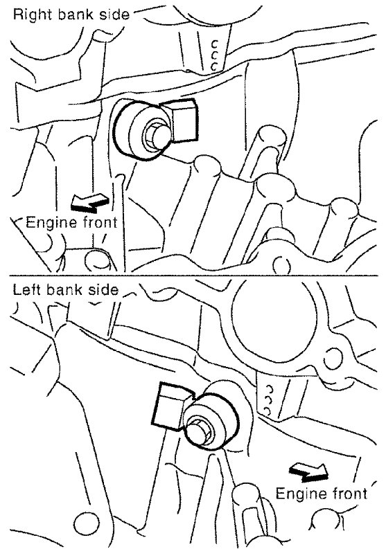 2) Remove both exhaust manifolds. Refer to [Exhaust Manifold: Removal and Installation [VQ40DE] Exhaust Manifold Removal and Installation ].
