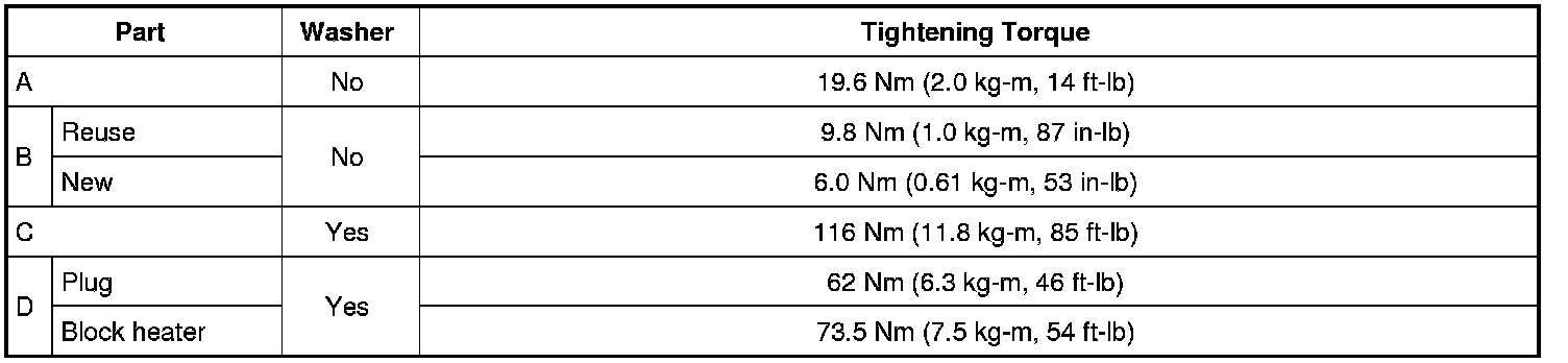 For Canada, (D) is not plug but block heater. Refer to [Engine Unit: Disassembly and Assembly].