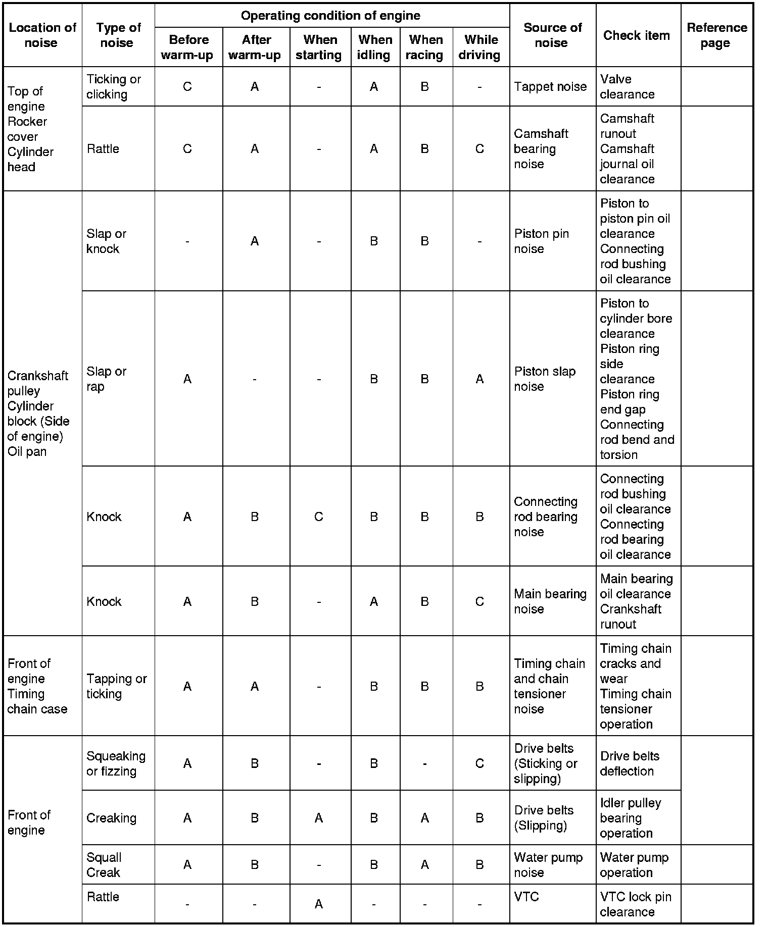 NVH Troubleshooting Chart