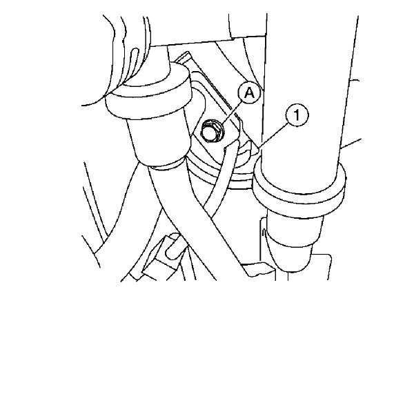 2) Remove the high-pressure pipe and low-pressure pipe bolt (A) from the front expansion valve (1).
