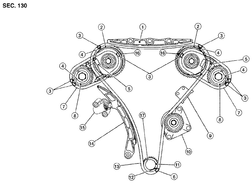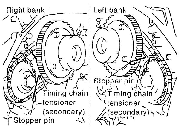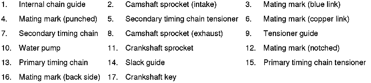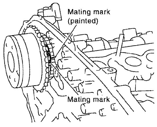 - During alignment, be careful to prevent dislocation of mating mark alignments of the secondary timing chains.
